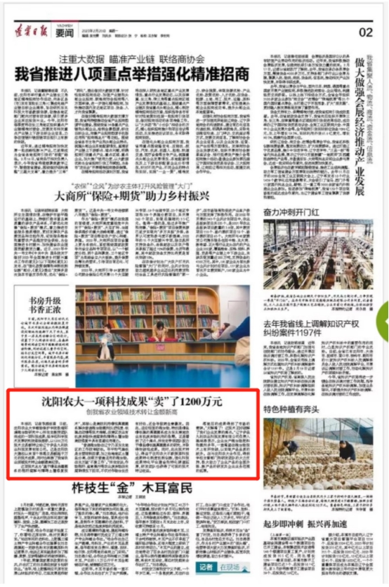 《沈陽農大一項科技成(chéng)果“賣”了1200萬元創我省農業領域技術轉讓金額新高》