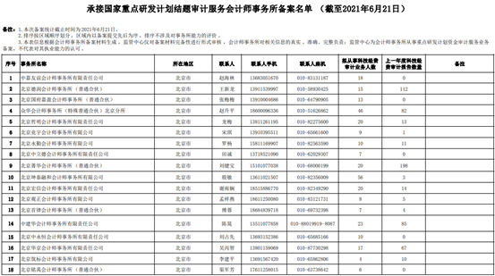 附件.承接國(guó)家重點研發(fā)計劃結題審計服務會(huì)計離風師事(shì)務所備案名單(截至2021621日)