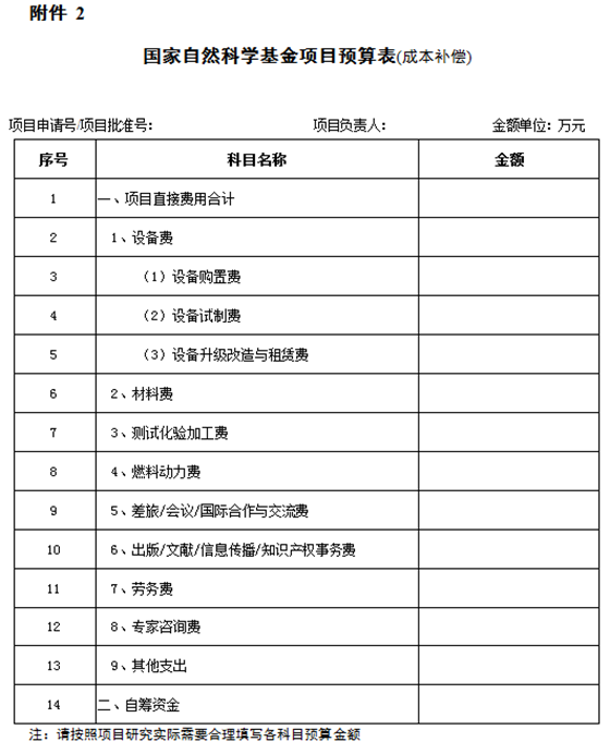 2.國(guó)家自然科學(xué)基金項目預算表(成(chéng)本補償)