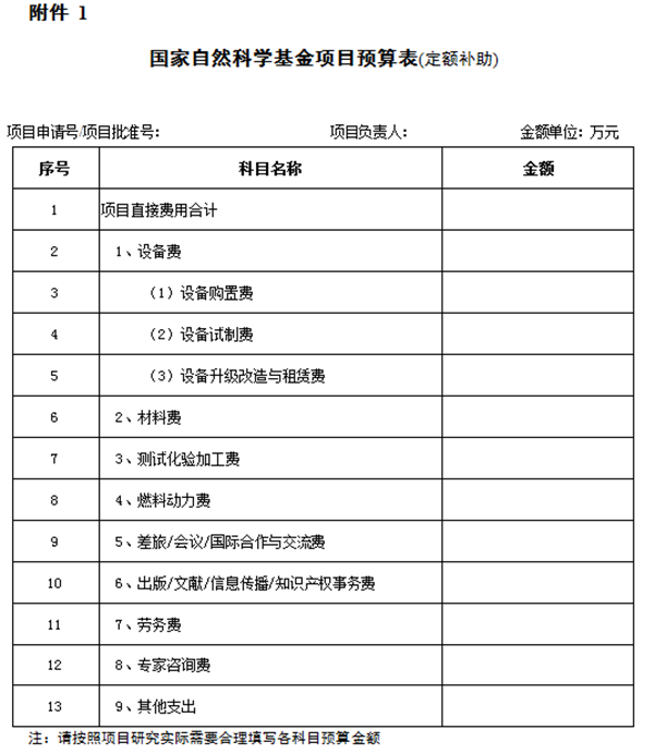 附件:1.國(guó)家自然科學(xué)基金項目白站預算表(定額補助)