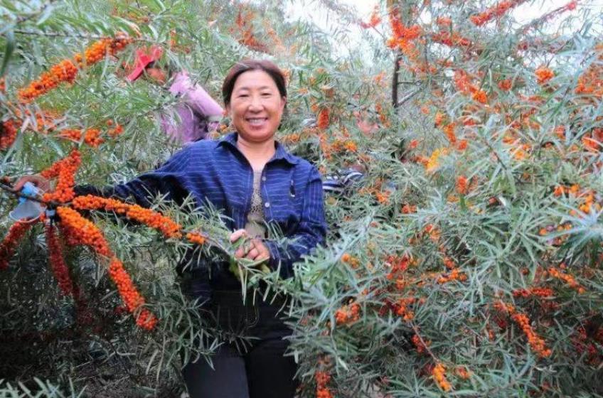 看到沙棘豐收景象,郎玉英笑了。舊舊