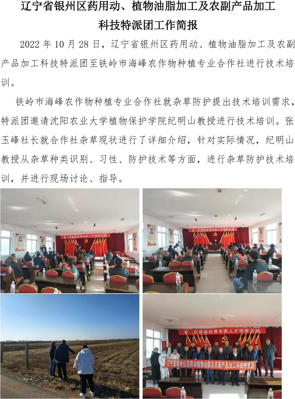 遼甯省銀州區藥用動、植物油脂加工及農副産品加工科技特派團工作簡森南報