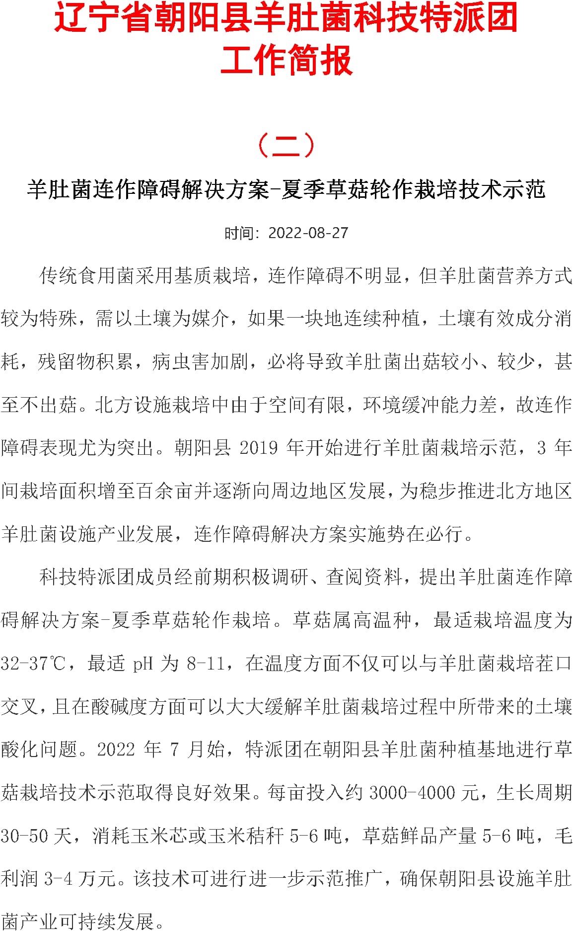 朝陽縣羊肚菌科特派-工作簡報(2)
